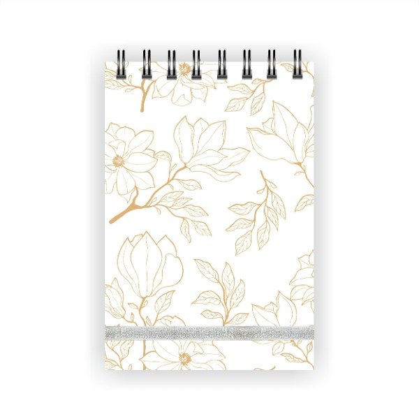 Modelo: Anotador color blanco con sutiles flores blancas de borde con color camel.