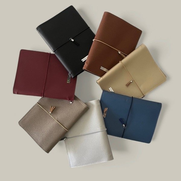 El estuche Midori es para libretas de tamaño A6. El estuche en su interior tiene 2 sobres porta papeles y un espacio especial para tu lapicera.